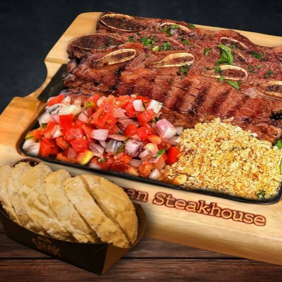 Assado de Tiras com 3 tiras + Vinagrete e Farofa – Acompanha 1 Pão Rústico em Fatias (os pesos informados dos cortes são in natura)