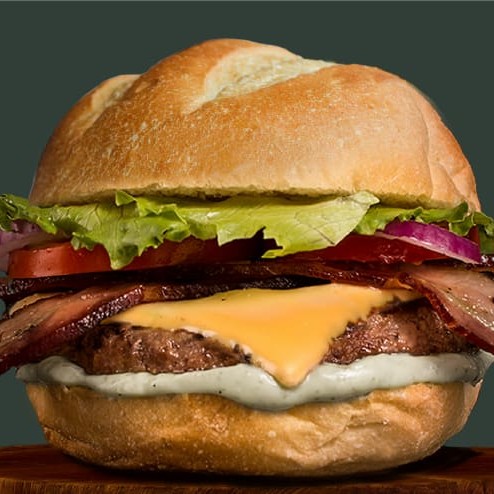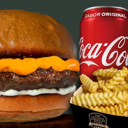 Pão, Alface, Tomate, Queijo American Cheese, Maionese Artesanal, Hambúrguer Angus.