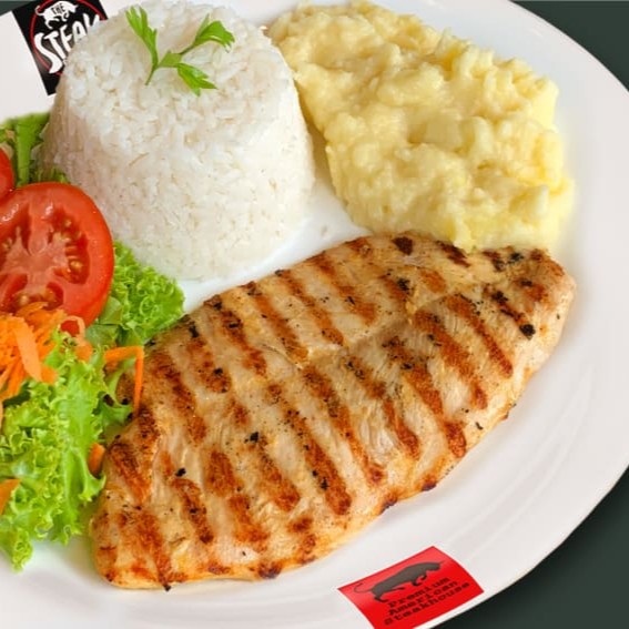 Aproximadamente 200 gramas de Linguiça Calabresa Fatiada + 5 unidades de Frango Sassami Marinado + aproximadamente 260 gramas de Filet de American Steak Grelhado – Acompanha 1 Pão Rústico em Fatias (os pesos informados dos cortes são in natura)