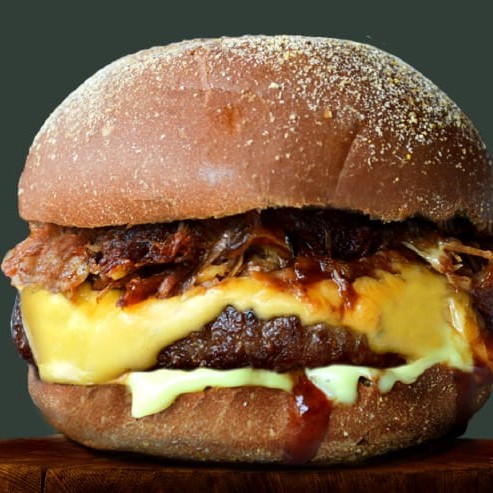 O gigante de sabores! Pão, Hambúrguer de Costela Angus 210g, Alface, Tomate, Uma fatia de Queijo American Cheese, Maionese Artesanal, Cebola Roxa e o suculento Bacon Grelhado.
