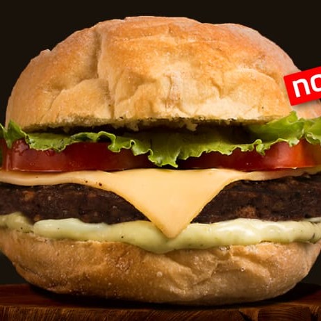 Pão, Queijo Cheddar Cremoso, Maionese Artesanal, Hambúrguer de Ervilha grelhado.