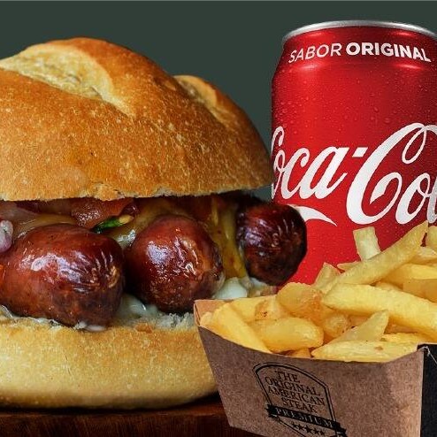 Pão, Queijo American Cheese, Maionese Artesanal, Vinagrete, Linguiça de Costela Bovina Angus. O Combo acompanha 01 Sandwich + 01 Bebida + 01 Batata Frita. “Linguiça de Costela levemente apimentada”