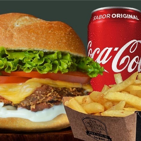 Pão, Alface, Tomate, Queijo American Cheese, Maionese Artesanal, Hambúrguer de Fraldinha 150g. Acompanha 01 Burger + 01 Bebida + 01 Batata Frita.