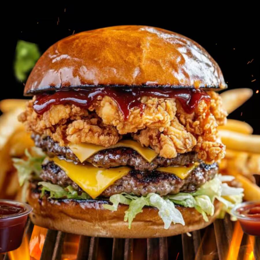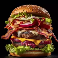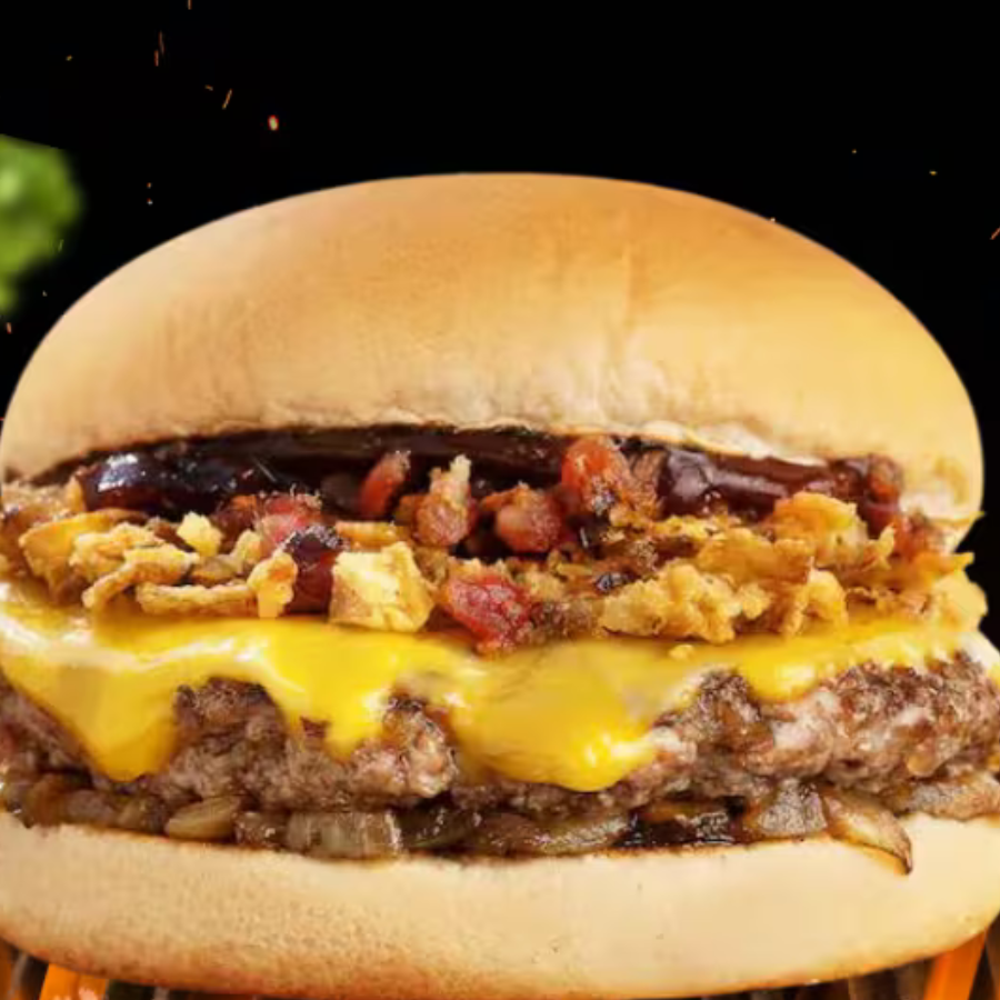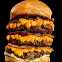 Cuidadosamente preparado para encantar até os mais exigentes paladares, este prato se destaca por seus dois hambúrgueres artesanais, queijo derretido, envolto por uma maionese caseira de sabor irresistível, e culmina com crocantes cubos de bacon em cubos.