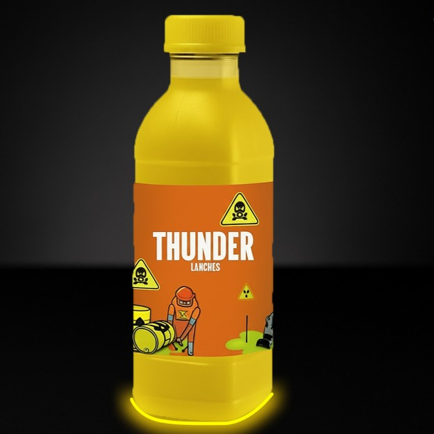 Diretamente da usina mais duvidosa do seu copo. Um suco radioativamente gelado, feito com caju da vergonha, aquele que você jura que não gosta… até dar o primeiro gole. Ácido na medida do constrangimento, doce no ponto do arrependimento e com uma cor que levanta suspeitas. Pode causar caretas, risadas inesperadas e a frase clássica: “pior que é bom”. Beba por sua conta e risco. A Thunder Lanches não se responsabiliza por decisões tomadas após o segundo copo. ⚠️😵💫