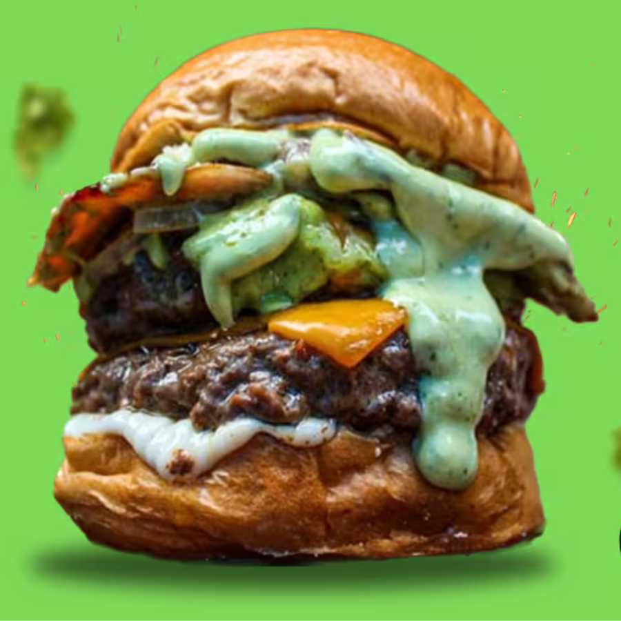 Dois hambúrgueres de soja artesanais generosos (porque um só seria piada), queijo derretido sem economia, alface só pra fingir equilíbrio e picles artesanal pra dar aquele contraste ácido que você não sabia que precisava. Tudo isso afogado em molho BBQ, porque se é pra exagerar, que seja com gosto.