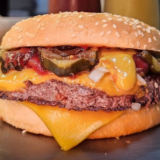 🍔 Pão de gergelim 🥩 150 gramas de carnes nobres 🧀 2 queijos cheddar fatiado 🌭 Ketchup Mostarda 🧅 Cebola em cubinhos 🥒Picles 🥬 Alface americano