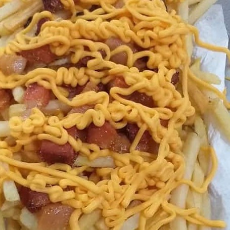 Porção de batata frita, cheddar, Catupiry e bacon