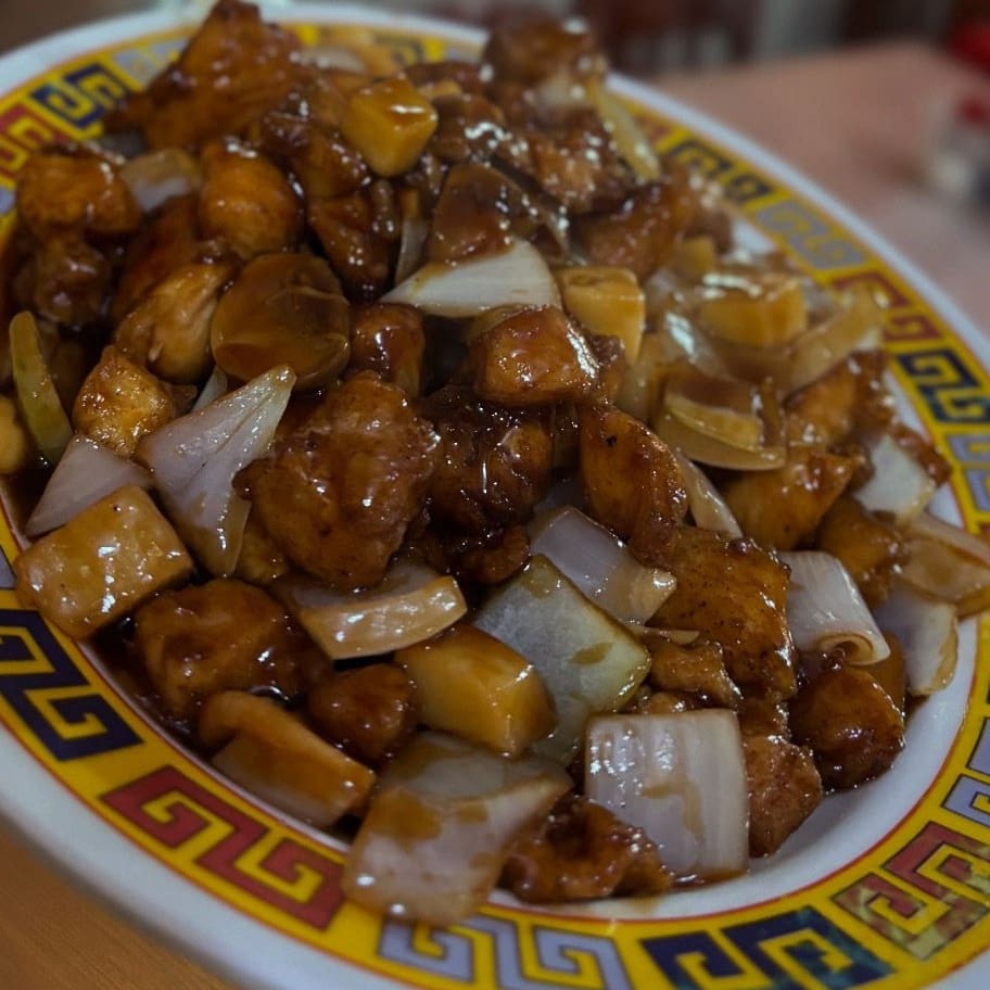 Delicioso Frango Xadrez, preparado à moda tradicional. Este prato, um dos mais pedidos, é composto por suculentos pedaços de frango, combinados com o crocante do pimentão, a doçura da cenoura, a acidez da cebola e o frescor do salsão. Para finalizar, é adicionado um toque especial de amendoim, que traz um sabor único e irresistível. Uma verdadeira explosão de sabores que promete encantar o seu paladar.