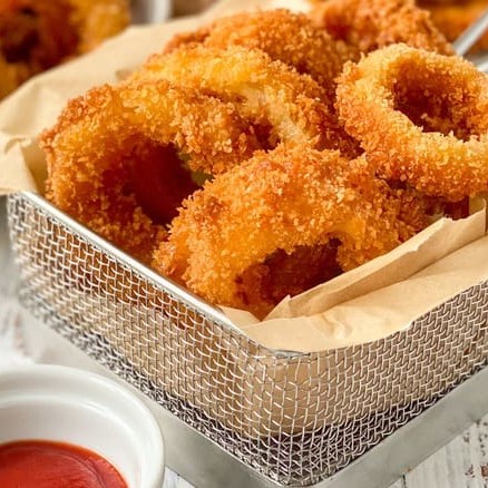 Anéis de Cebola empanados e fritos , sequinhos e crocantes *Imagem ilustrativa **pesado antes da fritura (250g)