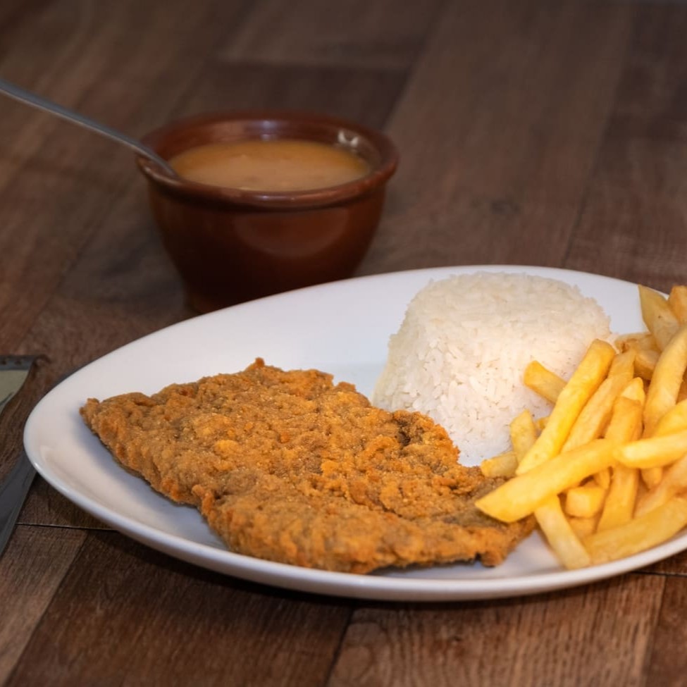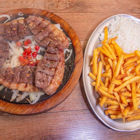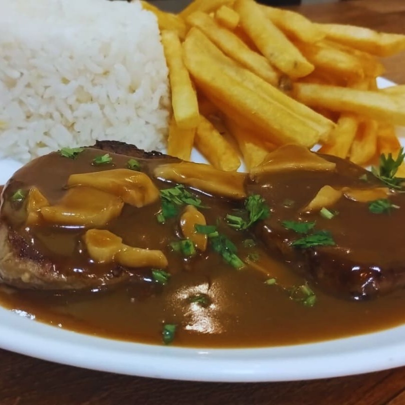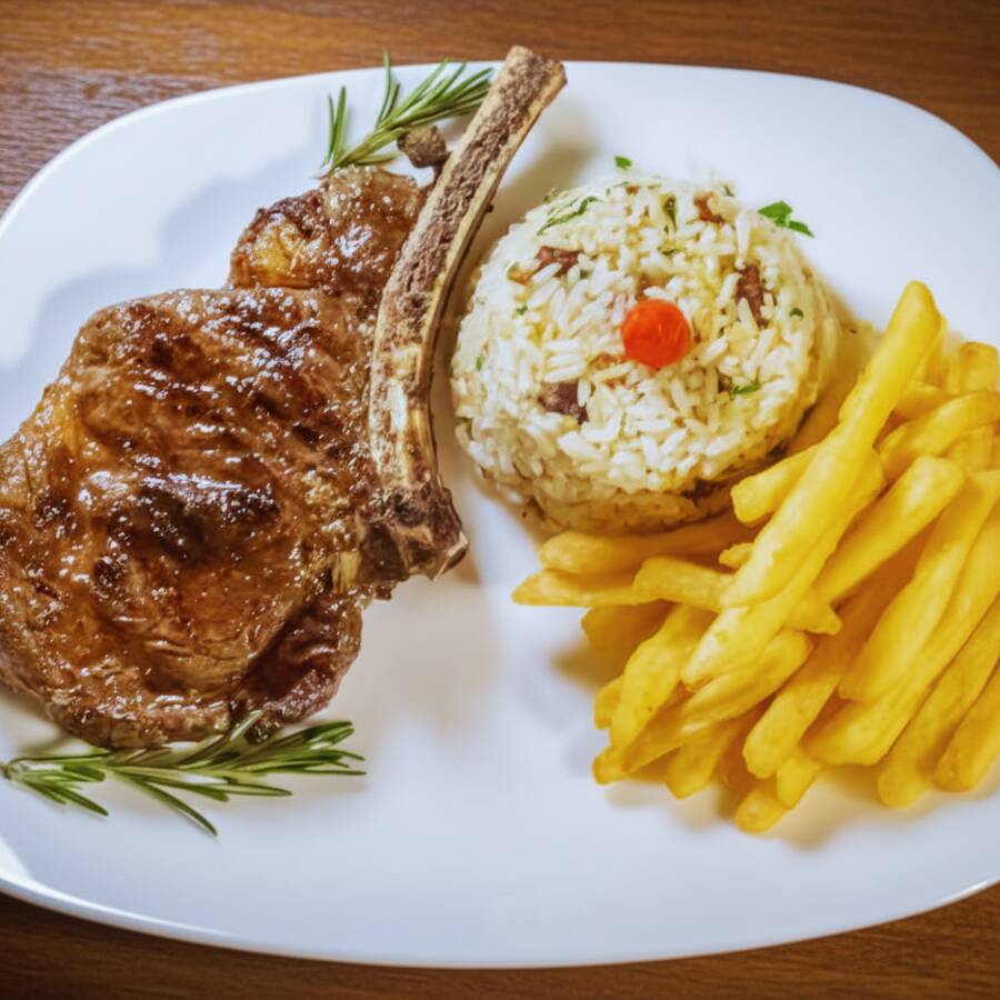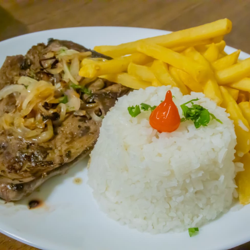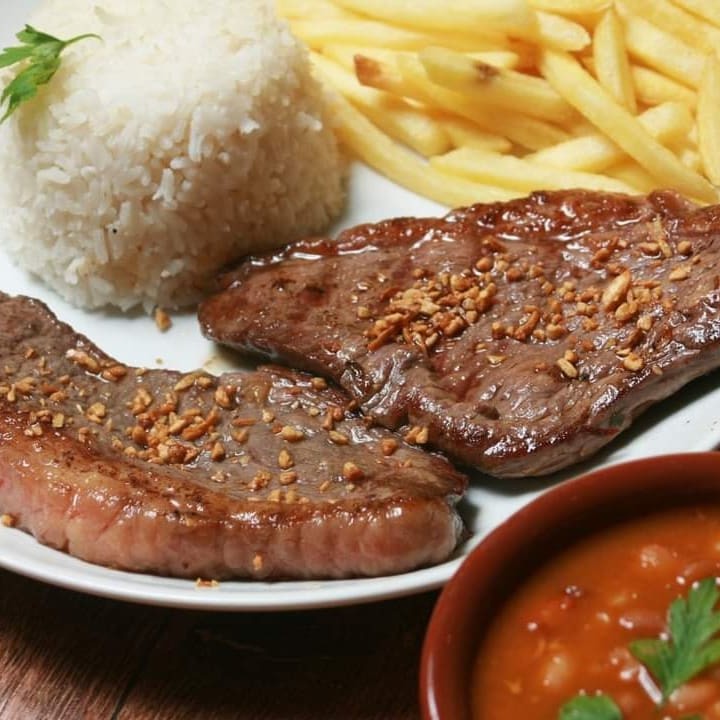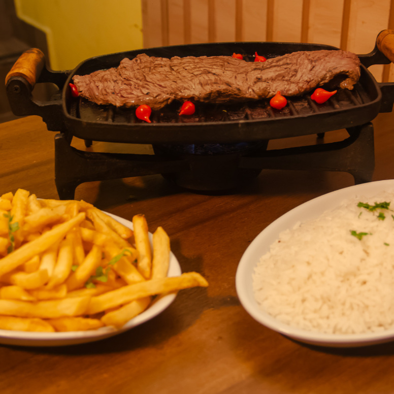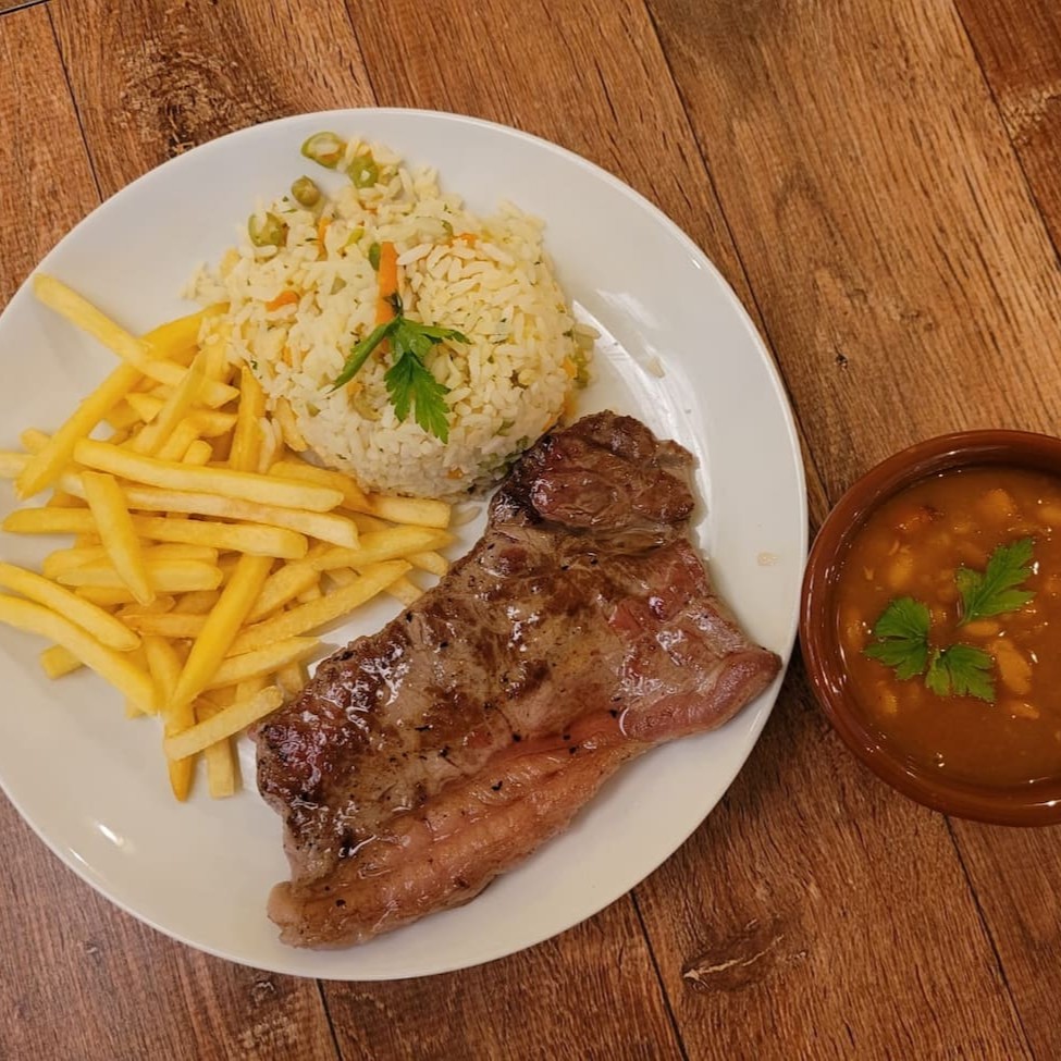 Corte Nobre da Carne Bovina, retirado da parte superior da costela. Acompanha Arroz Biro-Biro e Batata Frita Serve 1 pessoa