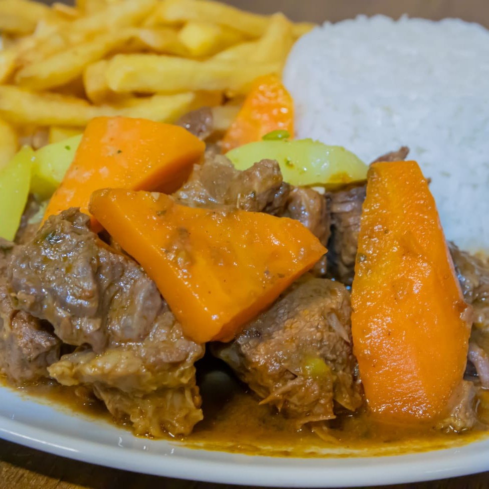 (2) Picadinho de Carne + Arroz branco + feijão em caldo + Batata frita *Favor informar na observação se irá necessitar de talheres descartáveis! **Para este item não é possível a troca de componentes ***Imagem ilustrativa #tags: promoção - super - oferta - extra - refeição - prato - marmita - almoço - janta Serve 2 pessoas