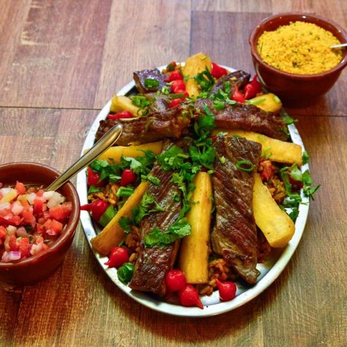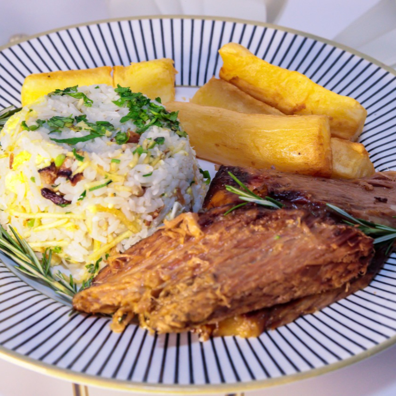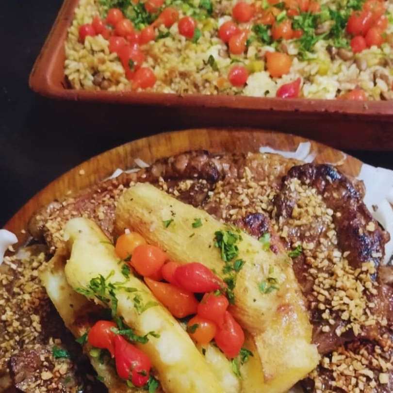 Cupim mega macio, desmanchando Acompanha Arroz Biro Biro e Mandioca frita Serve 1 pessoa