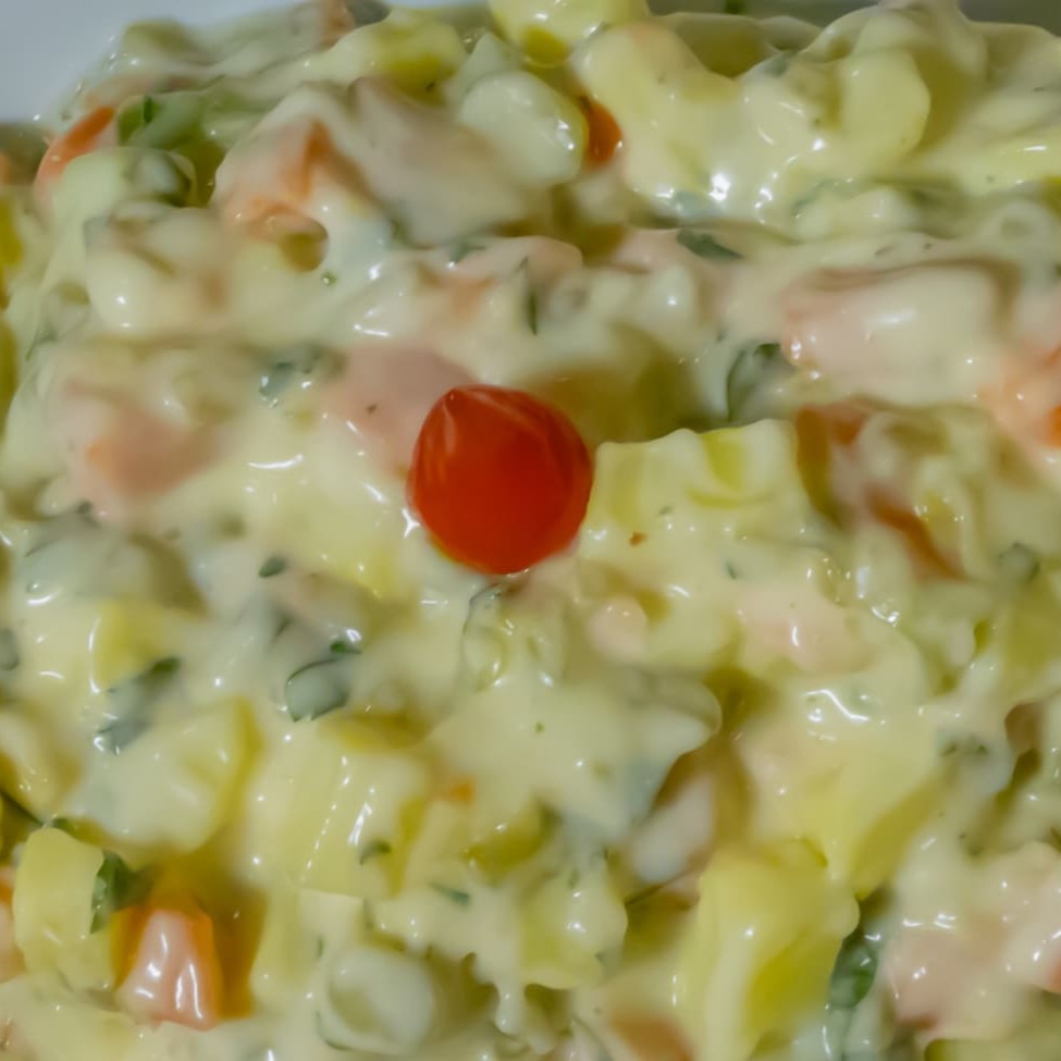 Batata, Cenoura, Vagem, Ervilha, Cheiro verde e Maionese. #tags: acompanhamento - guarnição - churrasco - almoço - janta Serve 2 pessoas