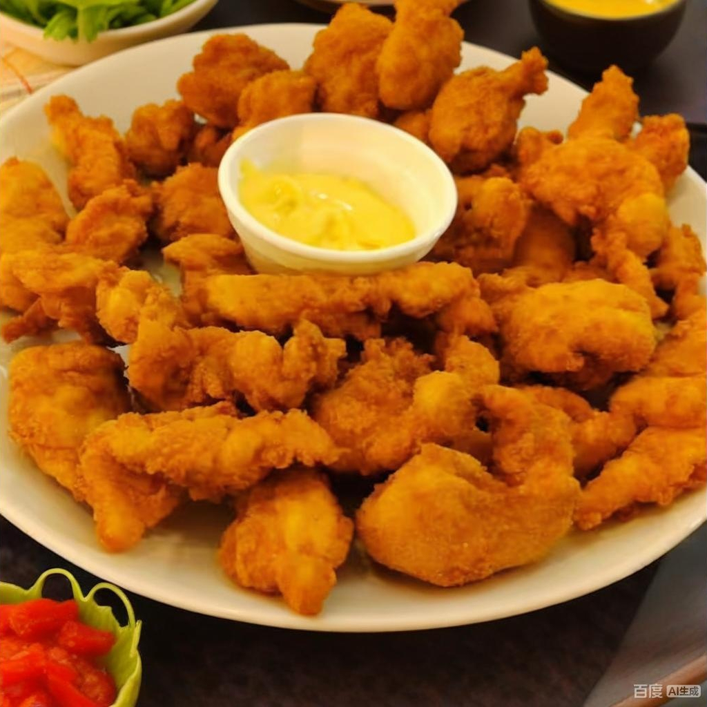 Iscas de filé de peito de frango bem temperados e empanados , estilo Nugget crocantes *Imagem ilustrativa #Tags: snack - tira-gosto - acompanhamento Serve 2 pessoas