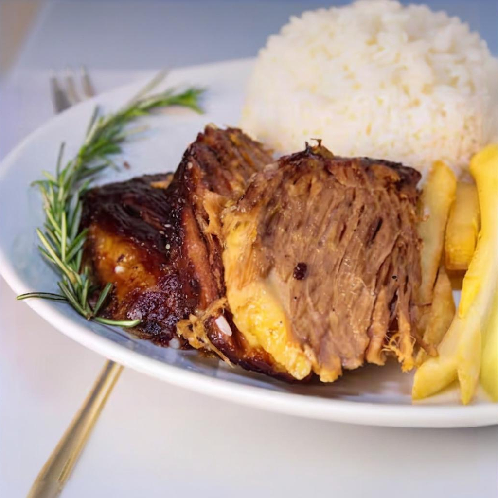 Cupim mega macio, desmanchando Acompanha Arroz Branco e Batata frita Serve 1 pessoa