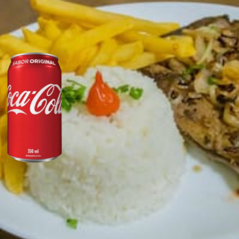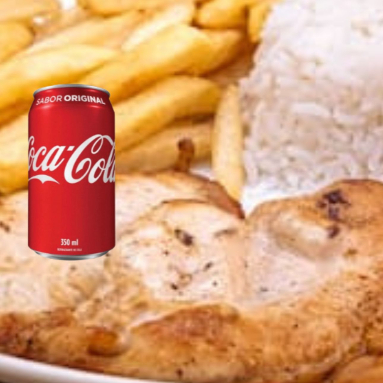 Filé de peito de frango + Arroz branco + Feijão em caldo + Batata frita 1 Coca - cola lata 350ml *Favor informar na observação se irá necessitar de talheres descartáveis! **Para este item não é possível a troca de componentes #tags: bbb - bbb24 - brasileiro - bom - barato - famoso - queridinho Serve 1 pessoa
