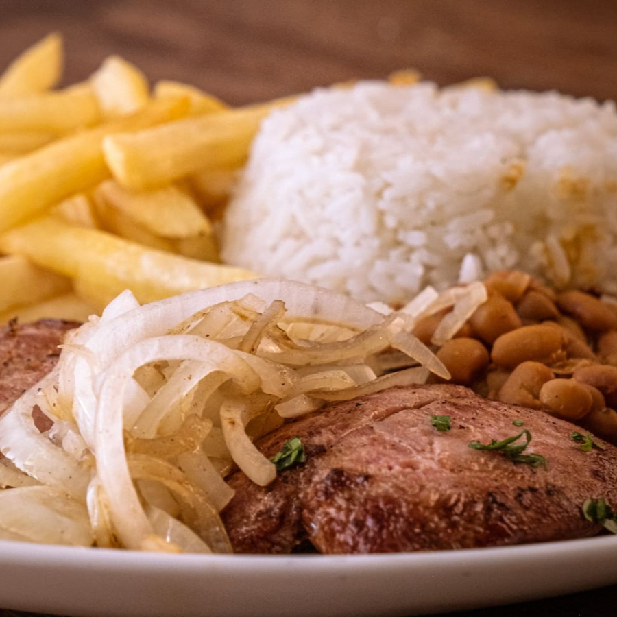 Linguiça Toscana acebolada + Arroz branco + Feijão em caldo + Batata frita *Favor informar na observação se irá necessitar de talheres descartáveis! **Para este item não é possível a troca de componentes #tags: bbb - bbb24 - brasileiro - bom - barato Serve 1 pessoa
