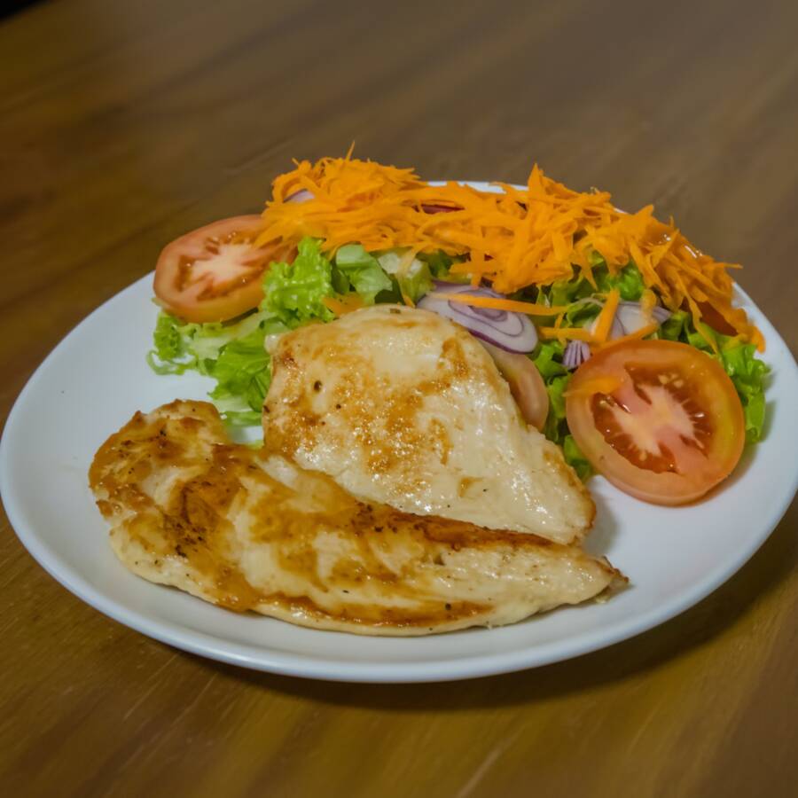 Filé de Frango Levíssimo Acompanhado de Salada Fresca com Alface, Tomate, Cebola e Cenoura **Para este item não é possível a troca de componentes #tags: saudável - leve - fit -light - saladinha com franguinho - dieta Serve 1 pessoa