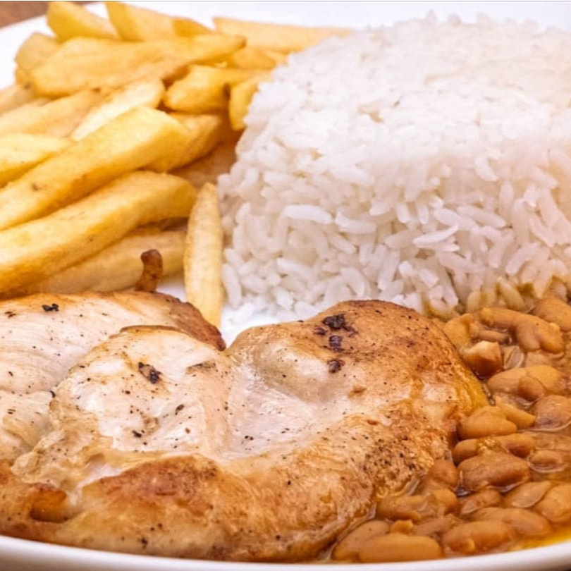 Filé de peito de frango + Arroz branco + Feijão em caldo + Batata frita *Favor informar na observação se irá necessitar de talheres descartáveis! **Para este item não é possível a troca de componentes #tags: bbb - bbb24 - brasileiro - bom - barato Serve 1 pessoa