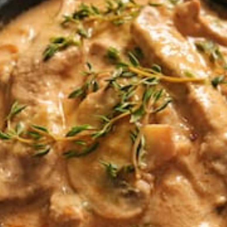 Pedaços de filé de Peito de Frango com um molho cremoso à base de creme de leite, que dá ao prato uma textura aveludada e um sabor rico. Acompanha Arroz branco e Batata Palha. #tags: culinária - francesa - comida - caseira - refeição Serve 1 pessoa