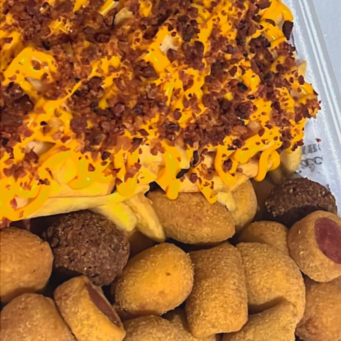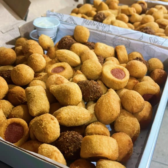 40 SALGADOS DE 18 GRAMAS - 1 BATATA FRITA G - 5 PASTEIS TAMANHO 10X10