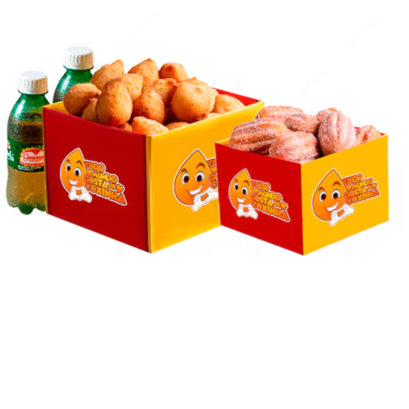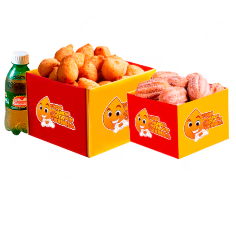 Double Combo (40 Mini Salgados 14g + 10 Baby Churros + 2 Bebidas)