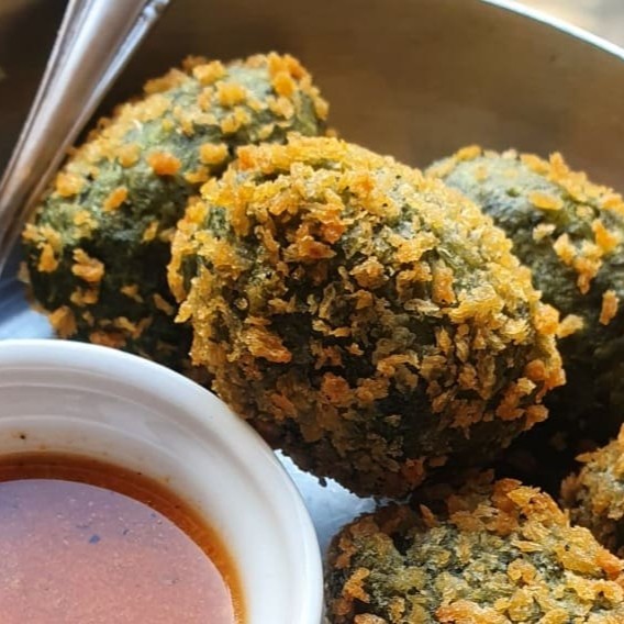 Bolinho de Taioba feito por nós e empanado na farinha panko.