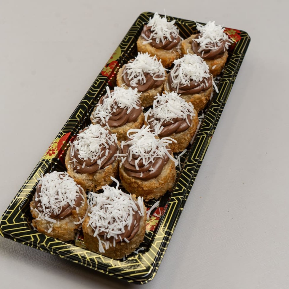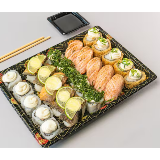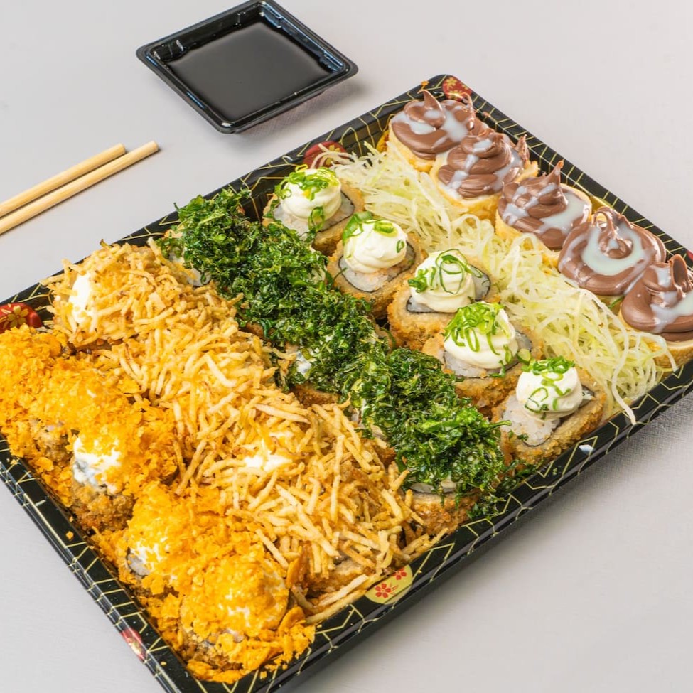 Acompanha: 2x Temakis com arroz de sua preferência. 1x Porção de Hot Roll (10 uni) 1x Porção de Hot Roll Banana com Creme de Avelã (10 uni)