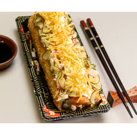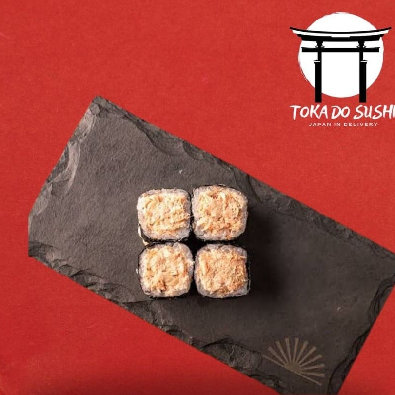 Hossomaki de salmão grelhado, empanado na farinha panko, finalizado com cream cheese e Doritos.