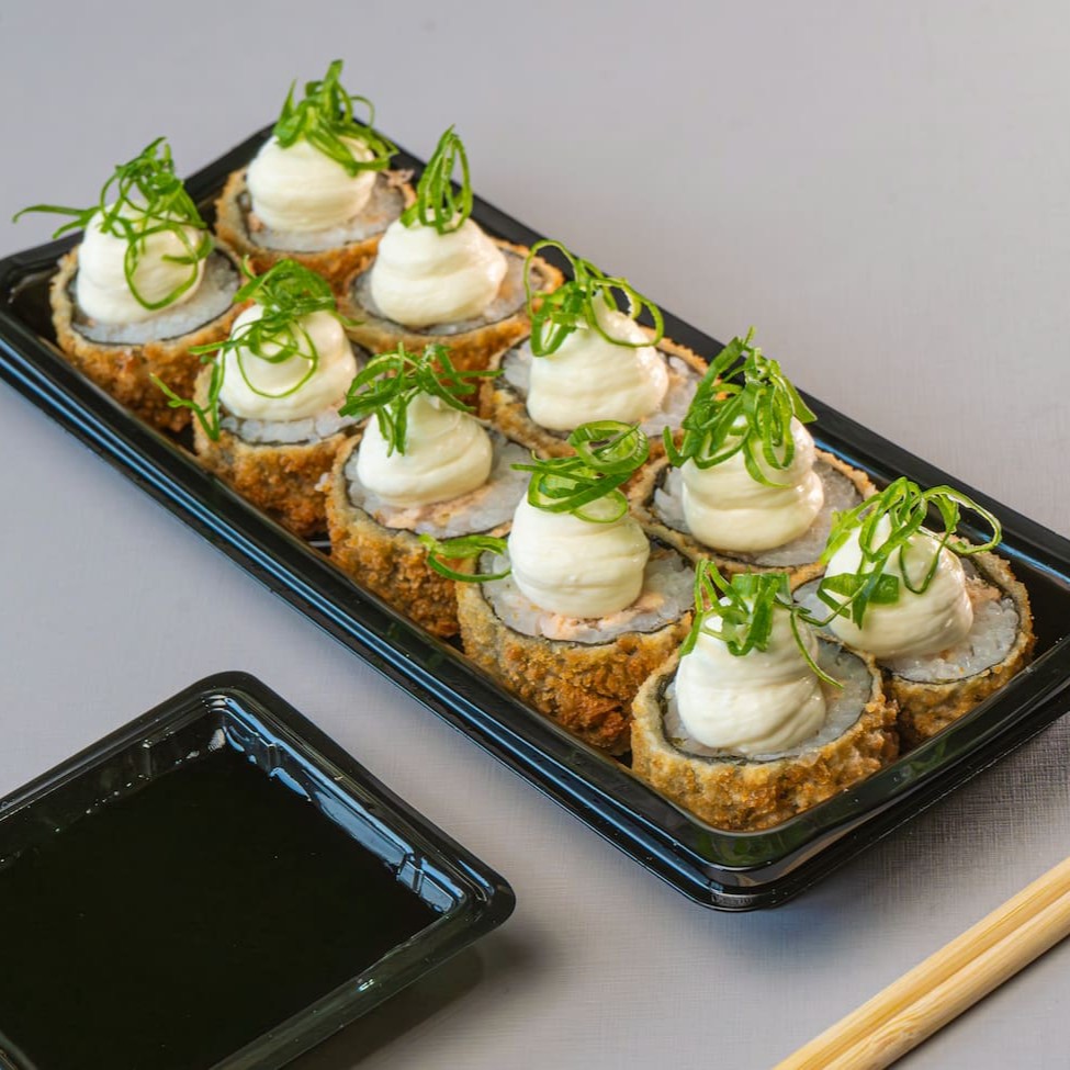 Hossomaki grelhado, empanado e frito com muita crocância. Acompanha cream cheese cebolinha e gergelim.
