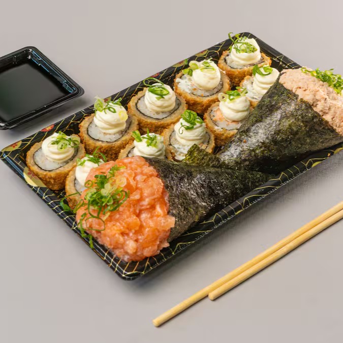 2 x Temakis com arroz de sua preferência + 1 x Porção de Hot Roll Philadelphia.