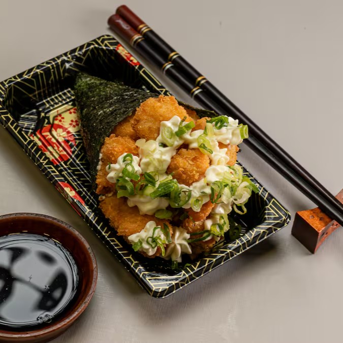 Temaki de salmão premium grelhado, com cream cheese, cebolinha e gergelim. Empanado e frito com muita crocância.
