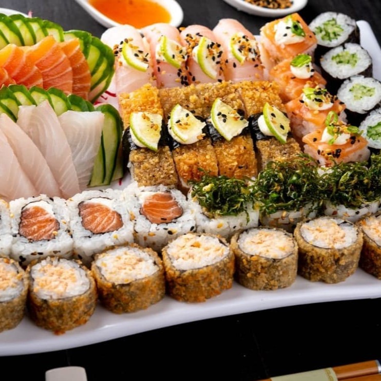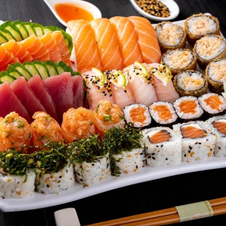 5 Sashimi Atum 5 Sashimi Salmão 4 Nigiri Salmão 4 Nigiri Tilapia 4 Jou 4 Uramaki Salmão 4 Uramaki Skin 4 Shakemaki 6 Hot Holl (Acompanha somente 1 pote de shoyu 30ml e 1 par de hashi)