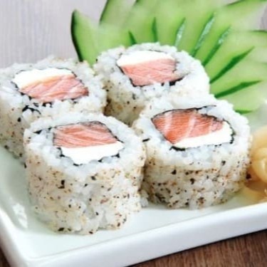 Arroz, alga, cebolinha, salmão fresco e cream cheese.