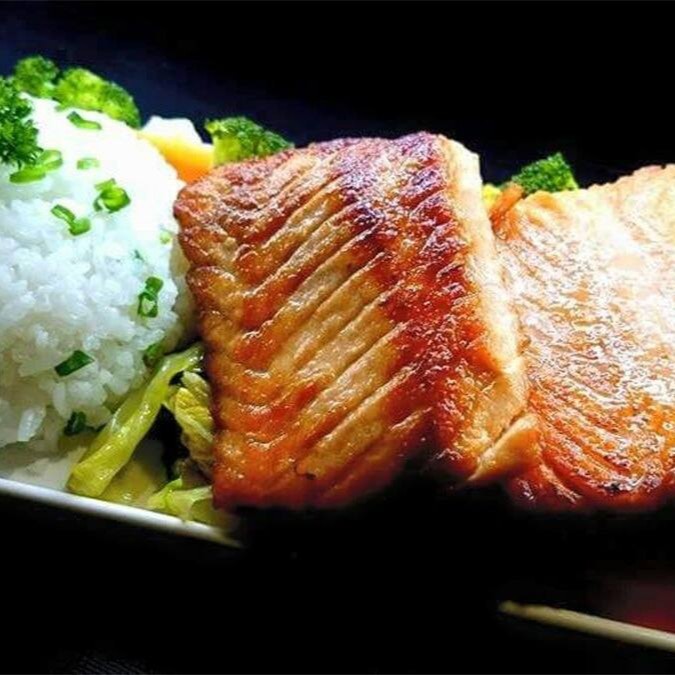 200g de Salmão Grelhado. Acompanha Gohan e legumes.