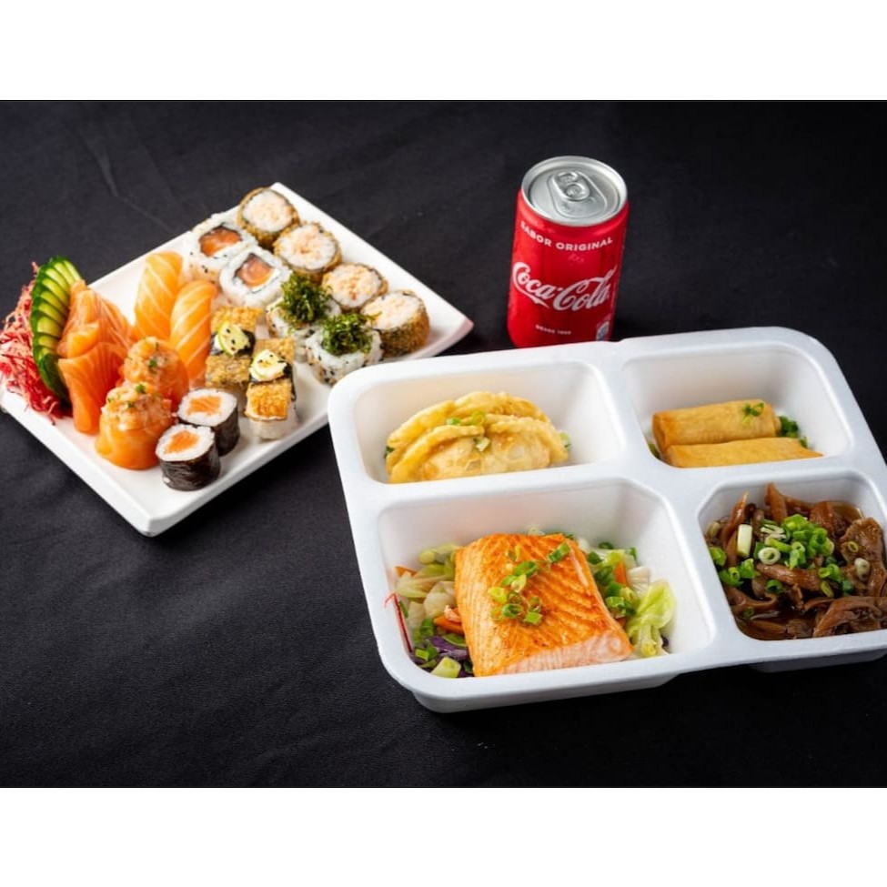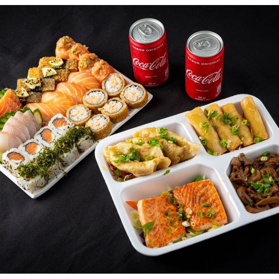 5 Sashimi Salmão 5 Uramaki Salmão 5 Uramaki Skin 5 Shakemaki 5 Hot Holl (Acompanha somente 1 pote de shoyu 30ml e 1 par de hashi)