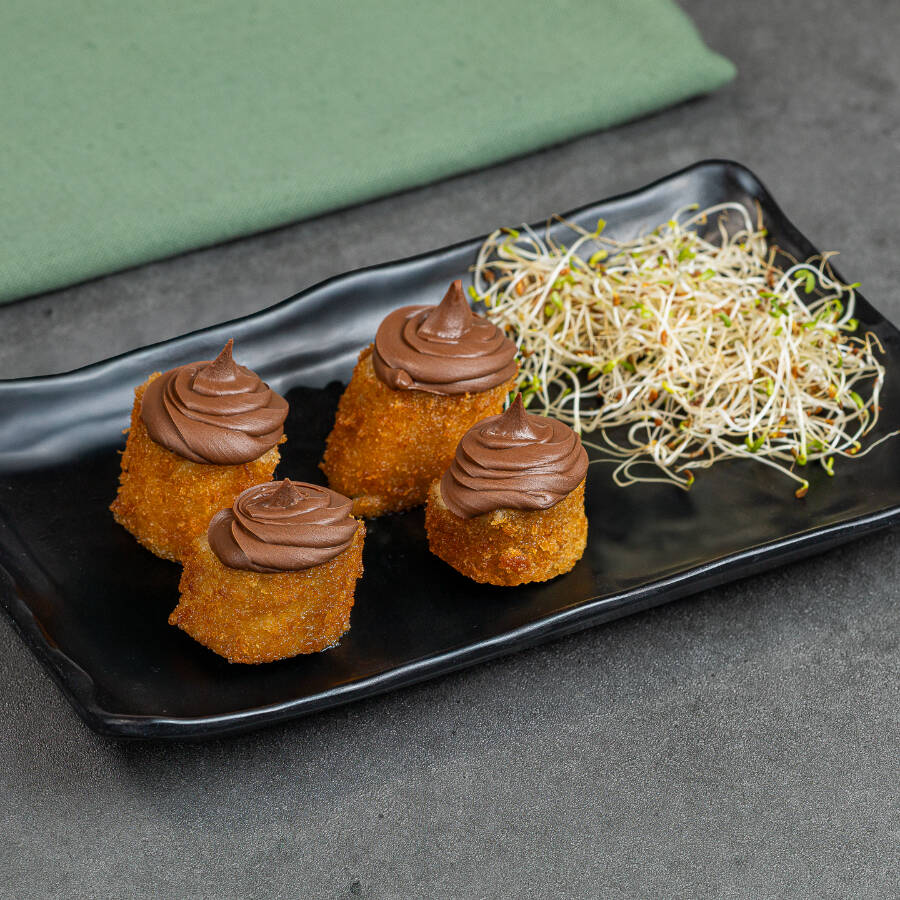 Deliciosa banana empanada, recheada com chocolate avelã.