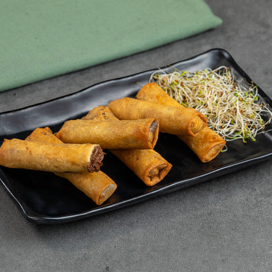 Rolinho primavera recheado com delicioso chocolate de avelã