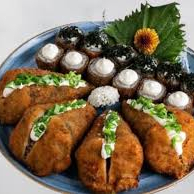 Tilápia batida com arroz e nori. (acompanha shoyu e hashi)