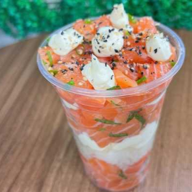 4 jou salmão 4 niguiri salmão 4 uramaki salmão 4 uramaki skin, 4 niguiri skin 10 hot holl (Acompanha somente 1 pote de shoyu 30ml e 1 par de hashi)