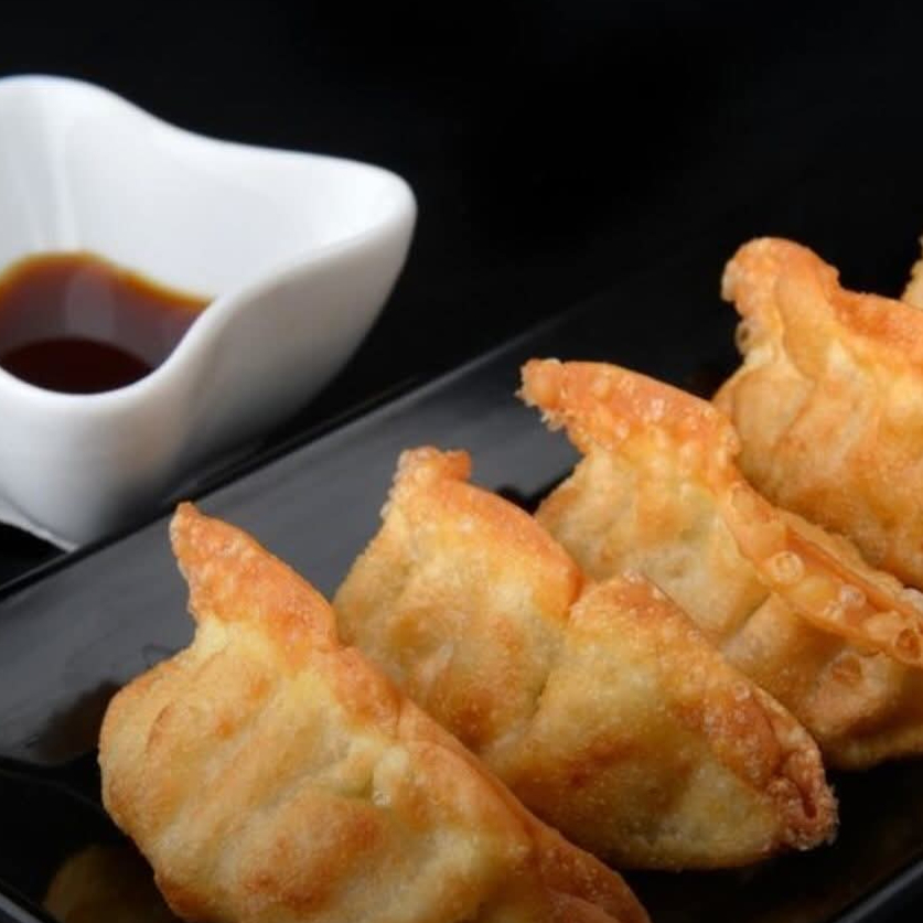 Maravilhosa guioza bovina frita um espetáculo a cada mordida.