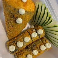 Enrolado em uma massa feita com farinha panco, recheio de salmão grelhado e couve frito. (Acompanha somente 1 pote de shoyu 30ml e 1 par de hashi)