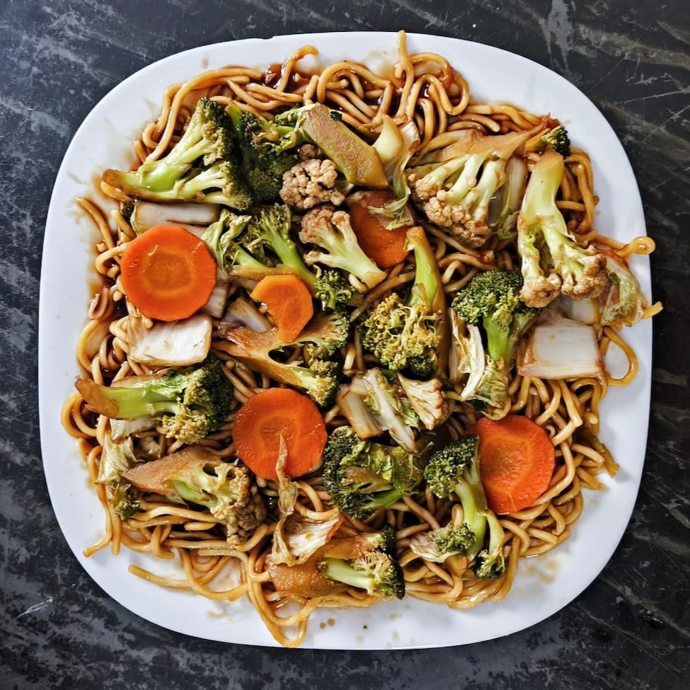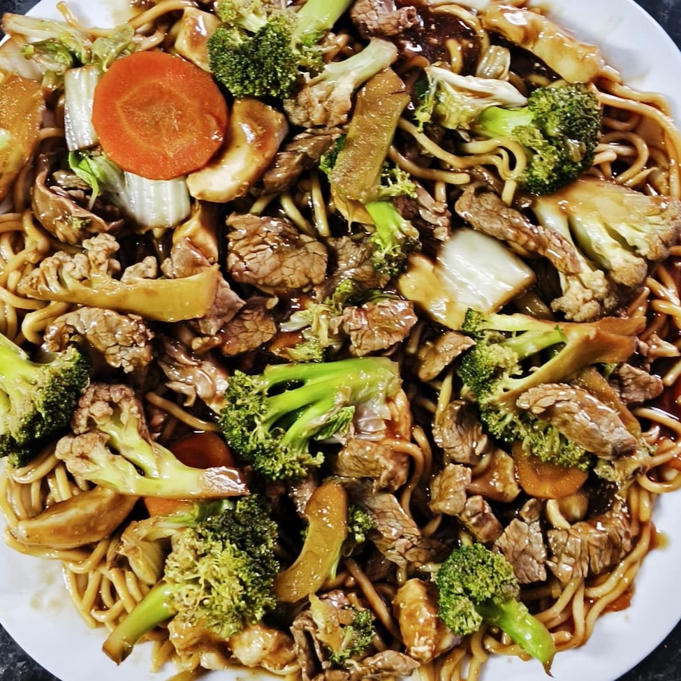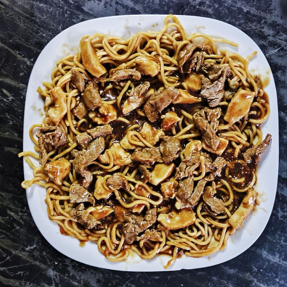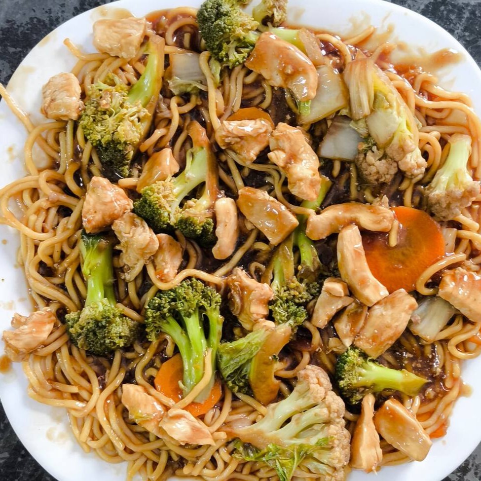 Macarrão,Carne,Frango, Acelga, Cenoura,Brócolis, Couve flor e nosso molho Especial