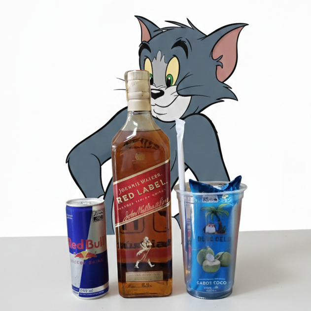 Acompanha 150 ml de Red Label 1 gelo de coco 1 Redbull 250 ml copo 700 ml e canudo