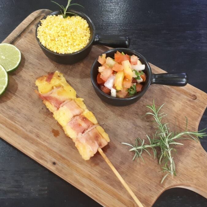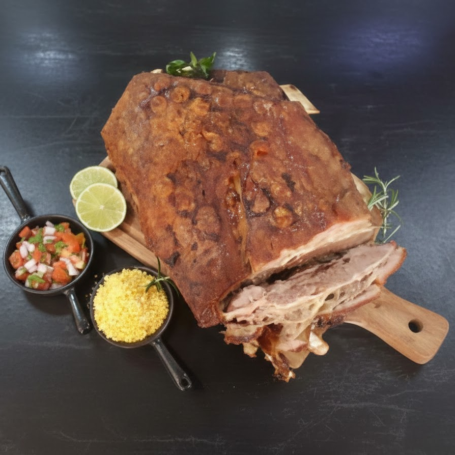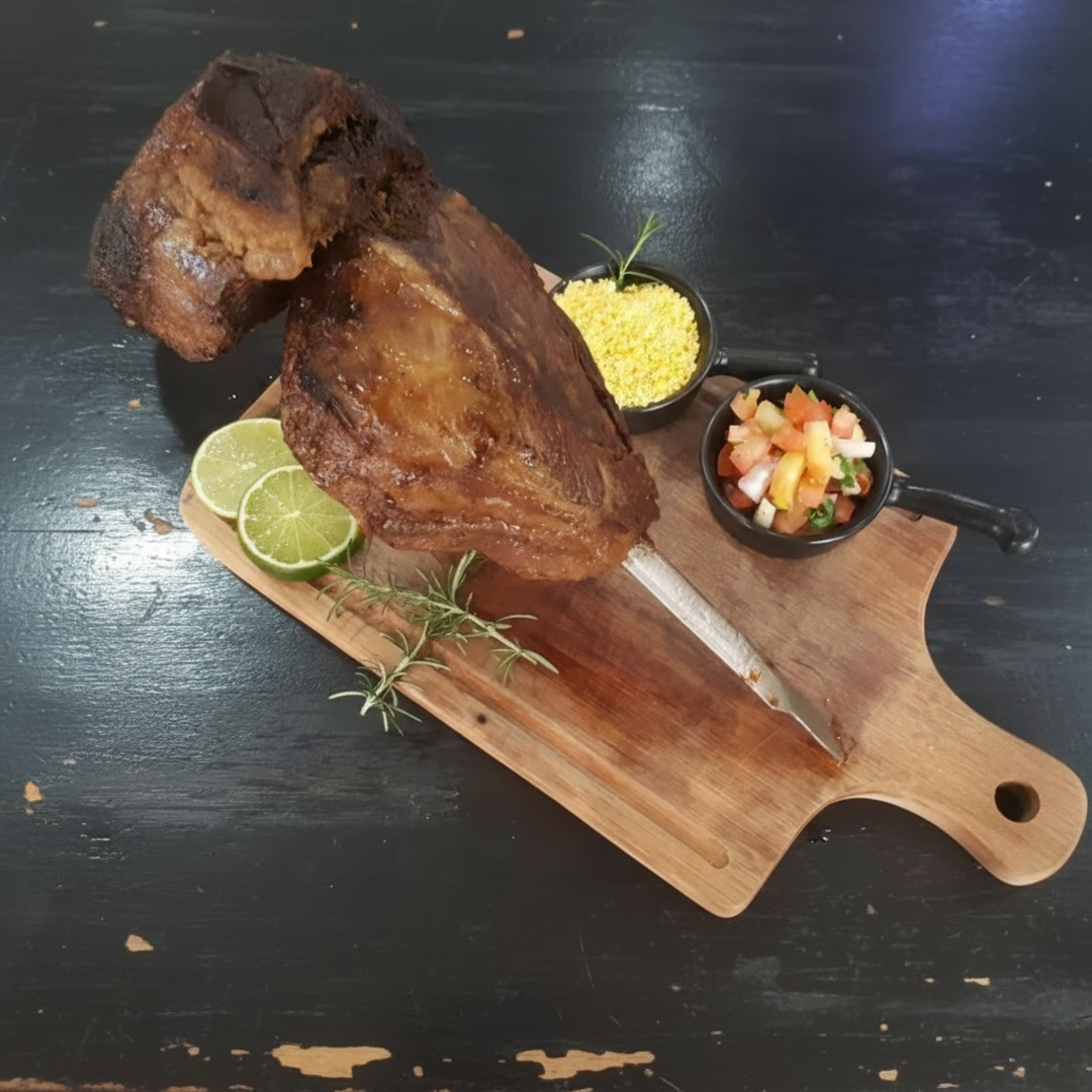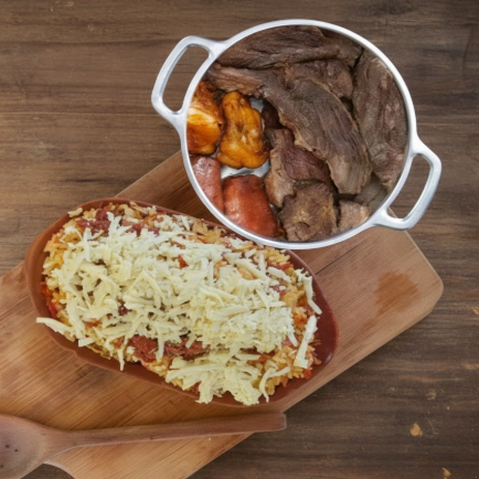 Feijão fraldinha, arroz ,carne seca desfiada, queijo coalho e Costela Assada na Brasa.