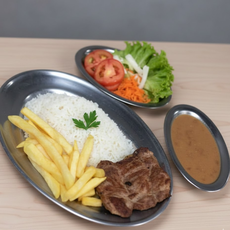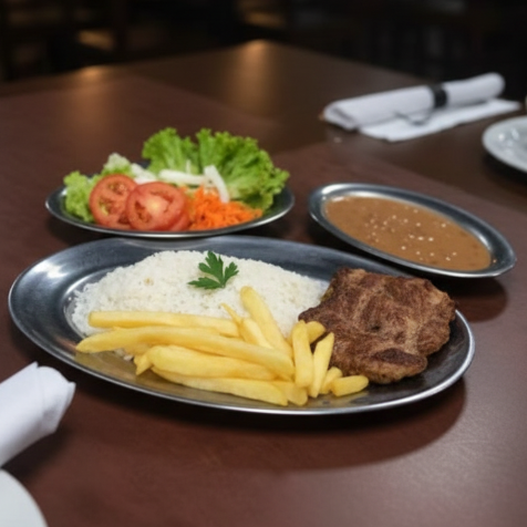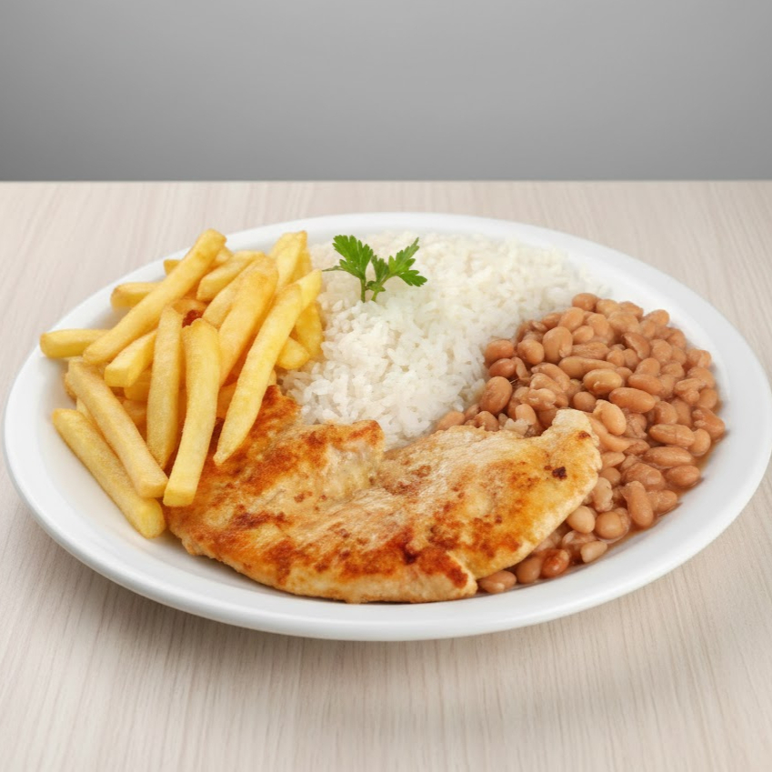 Acompanha: Arroz, feijão, fritas e salada.