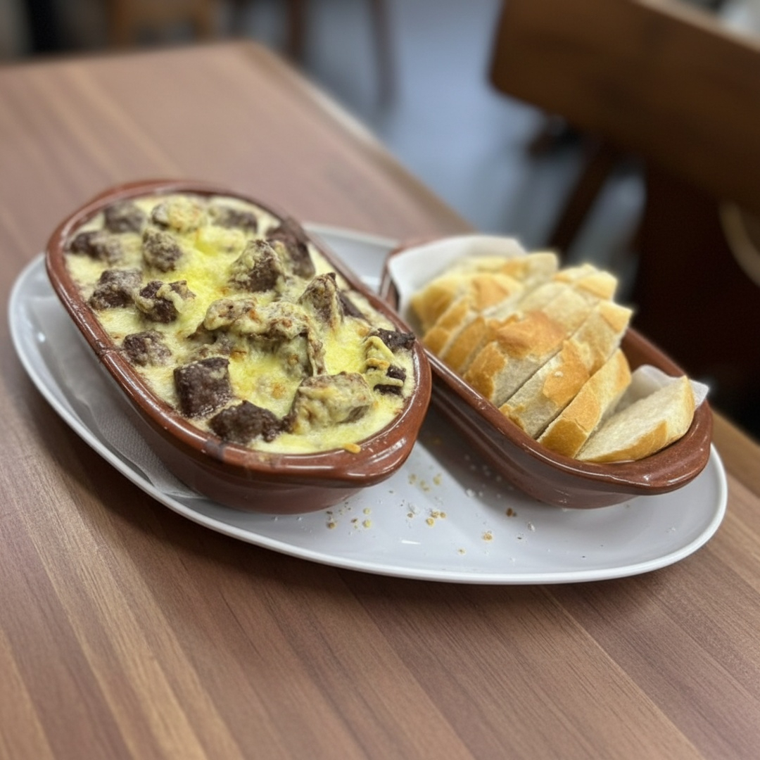 Acompanha arroz, fritas e o delicioso filé mignon ao molho de 4 queijos.