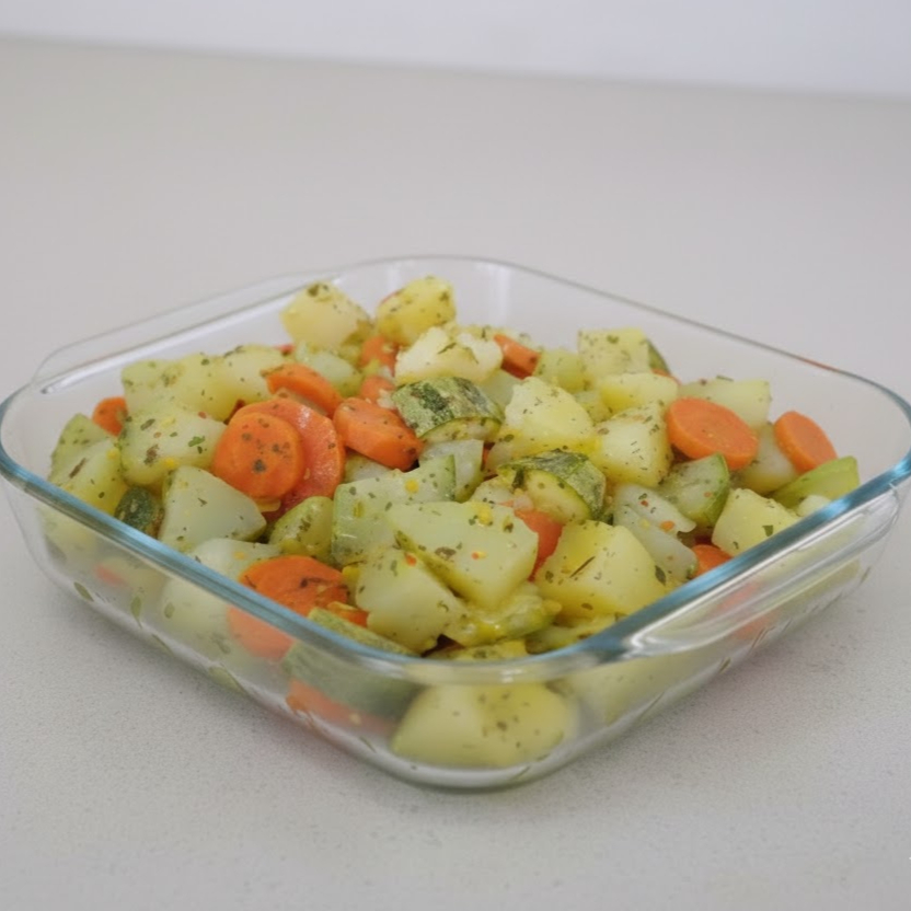 Deliciosos legumes cozidos (batata, chuchu, abobrinha e cenoura. Ocasionalmente adicionamos brócolis e vagem conforme disponibilidade)