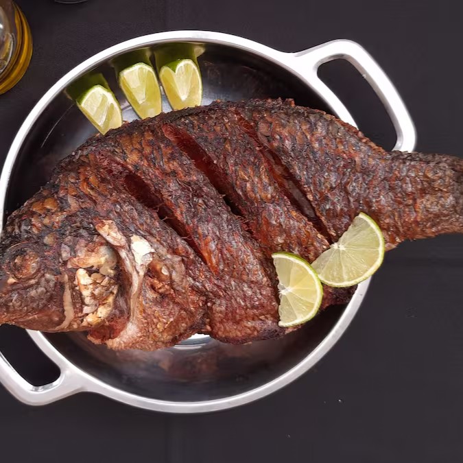 Acompanha: Feijão fradinho, arroz, carne seca desfiada, queijo coalho e tilápia frita.